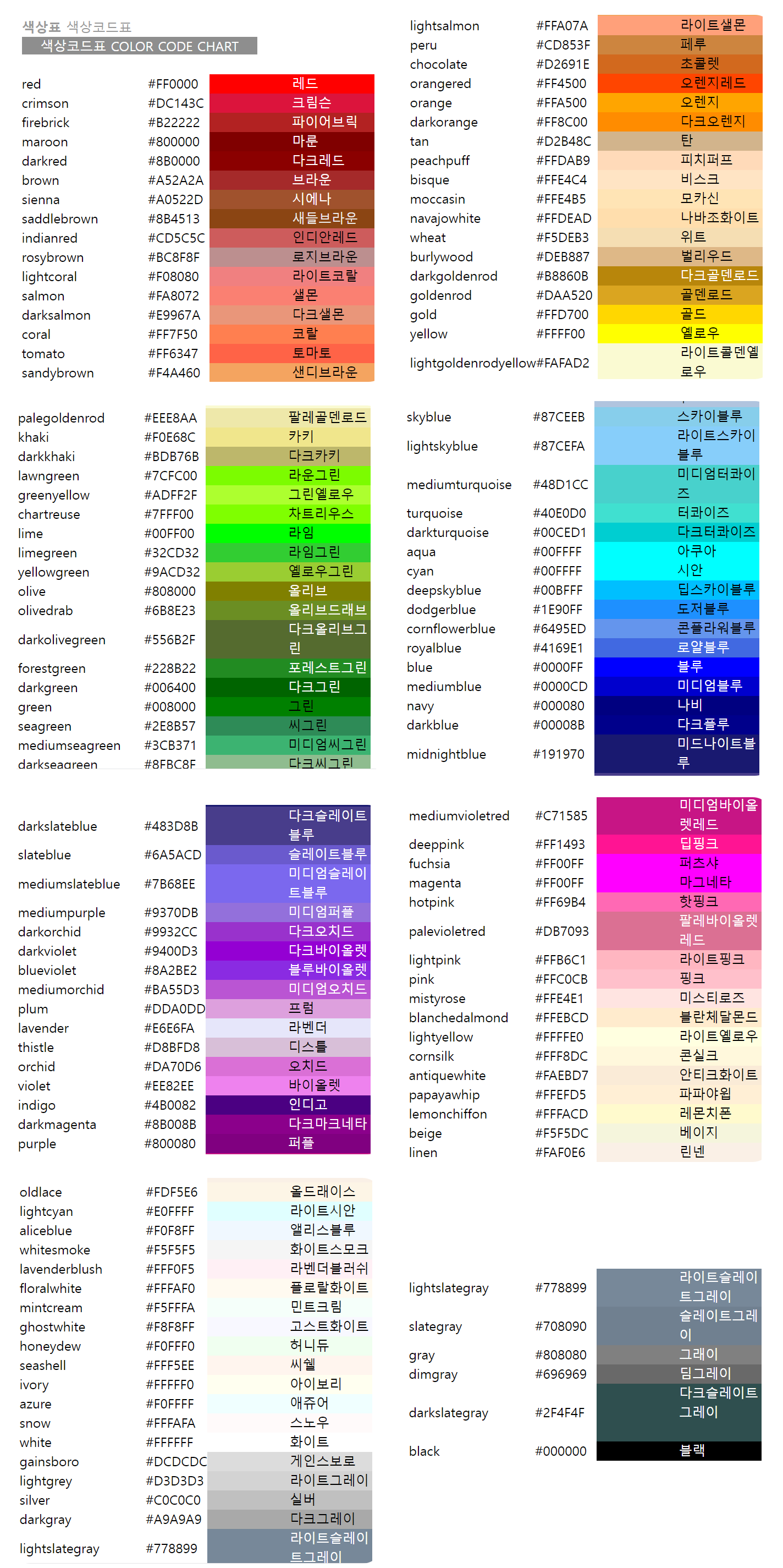 덕분이의 색상코드표 입니다. 유용하게 쓰세요